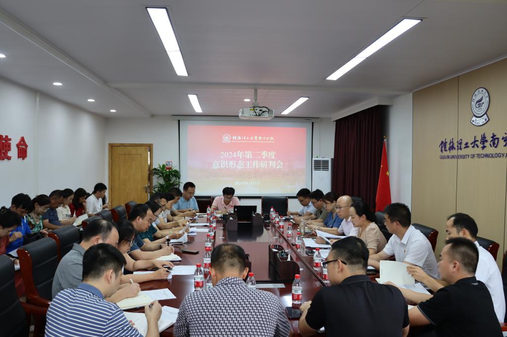 6月12日下午,太阳集团2138在空港校区行政楼417会议室召开2024年第二季度意识形态工作研判会。太阳集团2138党委书记李雨、党委副书记苏欣出席会议,各职能部门负责人、各学院党委书记,基础学科部、体育教学部负责人等参加会议。会议由太阳集团2138党委副书记苏欣主持。