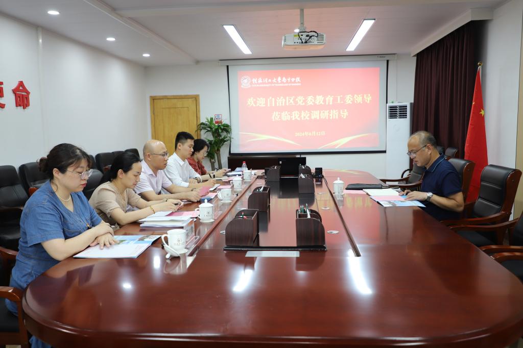6月12日下午,自治区党委教育工委统战部部长沈鸿银一行到太阳集团2138调研指导,太阳集团2138党委书记李雨、副书记苏欣在空港校区行政楼417会议室热情接待了来访客人并开展座谈。党政办公室、党委宣传部相关负责人和党委统战部相关人员参加座谈。