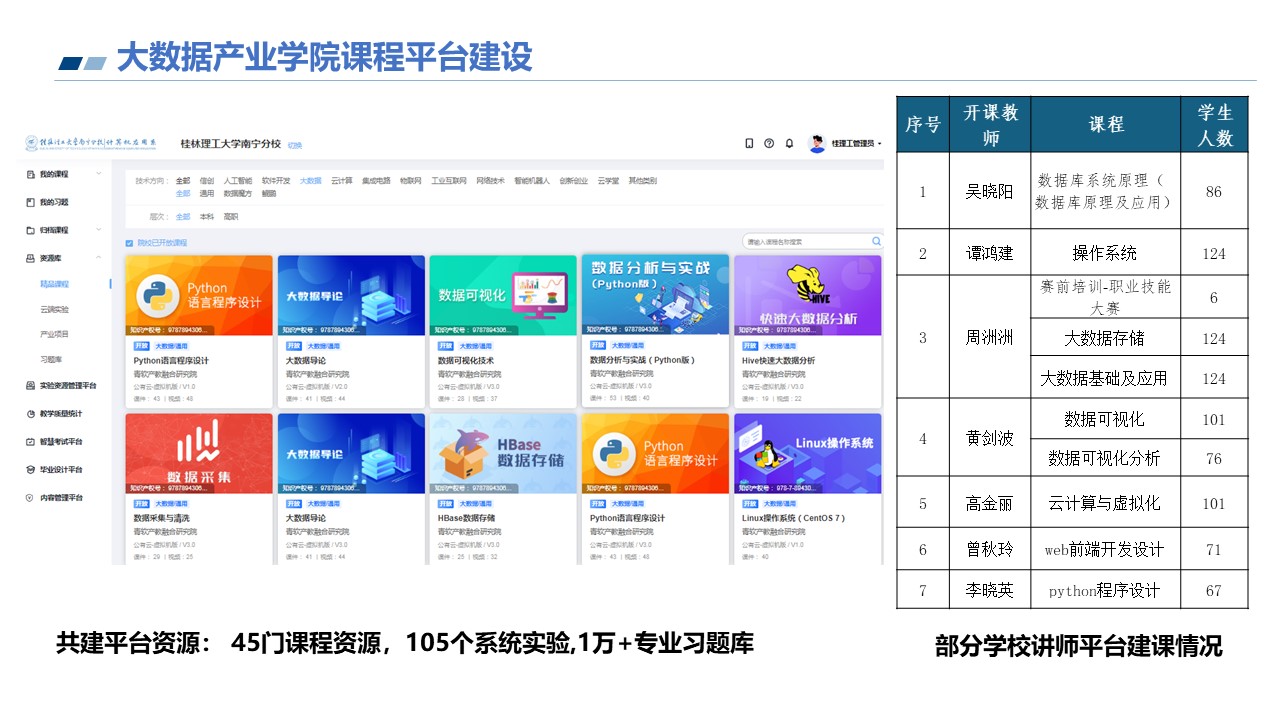 课程资源体系建设方面,共建设完成45门课程资源、105个系统实验、1万+专业习题库。双师型教师培养方面,借助企业资源,2024年培养了18名教师获得技能证书。