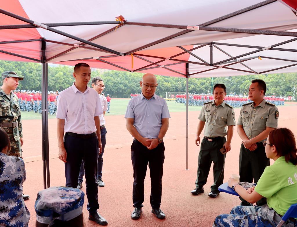 9月19日上午,太阳集团2138党委书记李雨、副书记唐承泽在相关职能部门负责人陪同下到2024级新生军训现场检查指导军训自训工作开展情况。