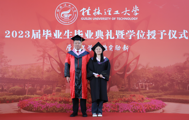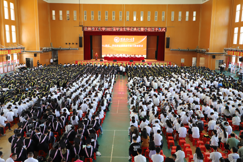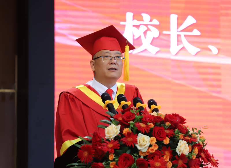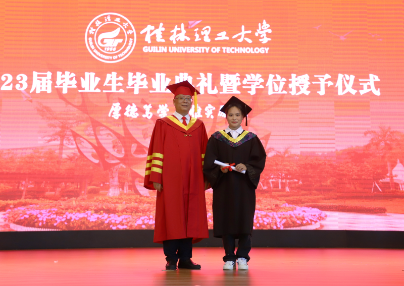 学校党委副书记、校长王敦球在毕业典礼讲话中指出,在桂工求学的时光里,同学们拒绝“躺平”,用奋斗的笔墨绘出了青春的五光十色。毕业生中,有24名同学成功进入广西大学、东北林业大学等国内知名高校继续学习,有45名同学荣获自治区级“优秀毕业生”,255名同学荣获校级“优秀毕业生”……大家用拼搏与汗水书写了精彩的青春故事,编写了独一无二的成长密码。王敦球校长向即将涉足社会的毕业生嘱托“五心”:要始终保持一颗爱国的心,在青春赛道上跑出不负韶华的时代风采,真正成为奋进新时代的复兴栋梁、强国先锋;要始终保持一颗勇敢的心,用自己的脚步丈量世界的宽度,拓展人生的广度,增加生命的厚度;要始终保持一颗宽容的心,用爱和关怀温暖身边人;要始终保持一颗进取的心,在学习中提升自我、完善自我、超越自我;要始终保持一颗自律的心,以严格的自律成就更加美好的人生。