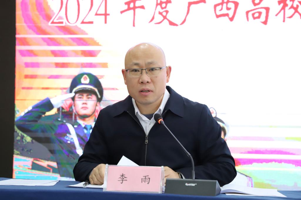 黄绍光代表承办单位致辞。他表示,广西现代职业技术学院作为广西首批“双高”建设单位,始终以习近平强军思想为指导,将国防教育融入办学特色,构建“五位一体”国防教育体系,期待与各高校深化合作,共推国防教育高质量发展。