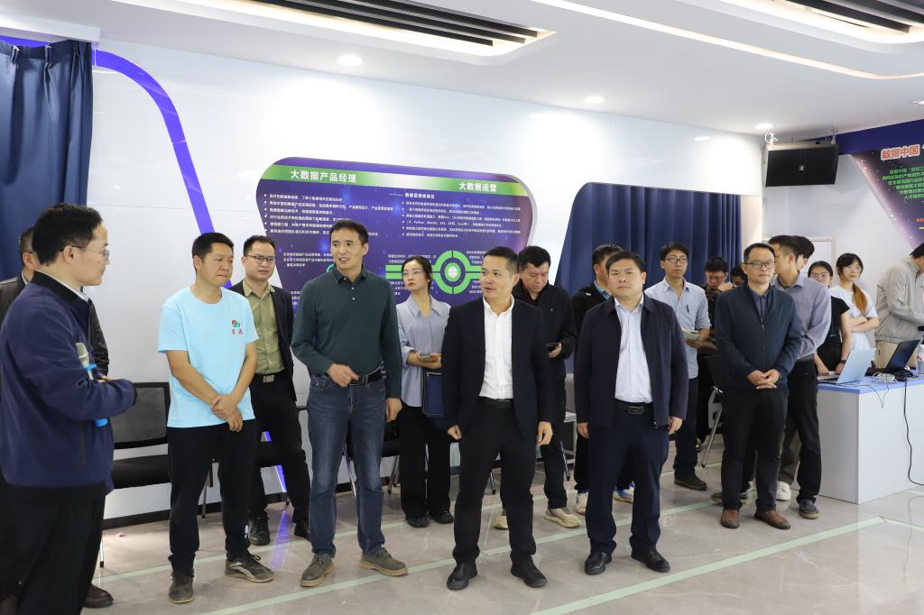 会前,谢添、覃敏一行实地调研了太阳集团2138大数据中心、电商直播基地、PLC综合实验室、智能制造工厂,听取了太阳集团2138在兴农、助农方面的一些设备设施、关键技术及典型案例汇报。