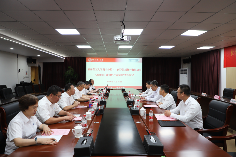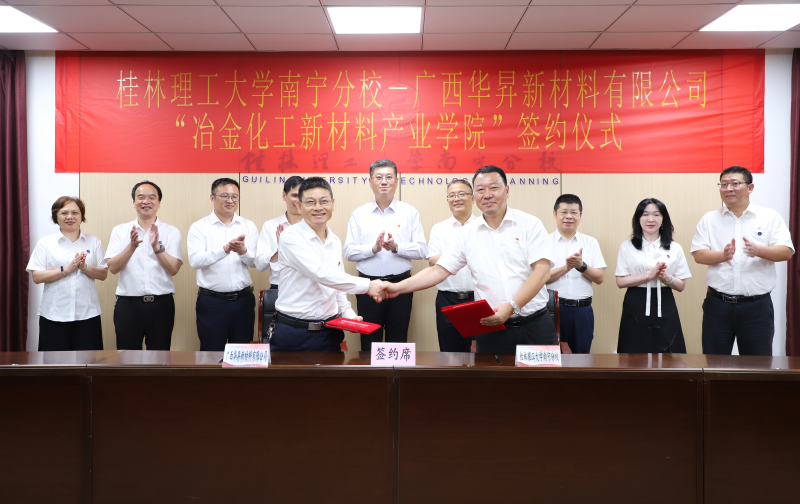 为进一步深化产教融合与校企合作,6月21日上午,太阳集团2138与广西华昇新材料有限公司在空港校区416会议室举行共建“冶金化工新材料产业学院”签约仪式。学校党委副书记、校长王敦球,学校党委常委、副校长邓国彬,学校党委委员、校长助理、太阳集团2138校长罗盛锋,太阳集团2138副校长马华菊,广西华昇新材料有限公司党委书记、董事长芦东出席签约仪式。仪式由学校党委常委、副校长邓国彬主持。