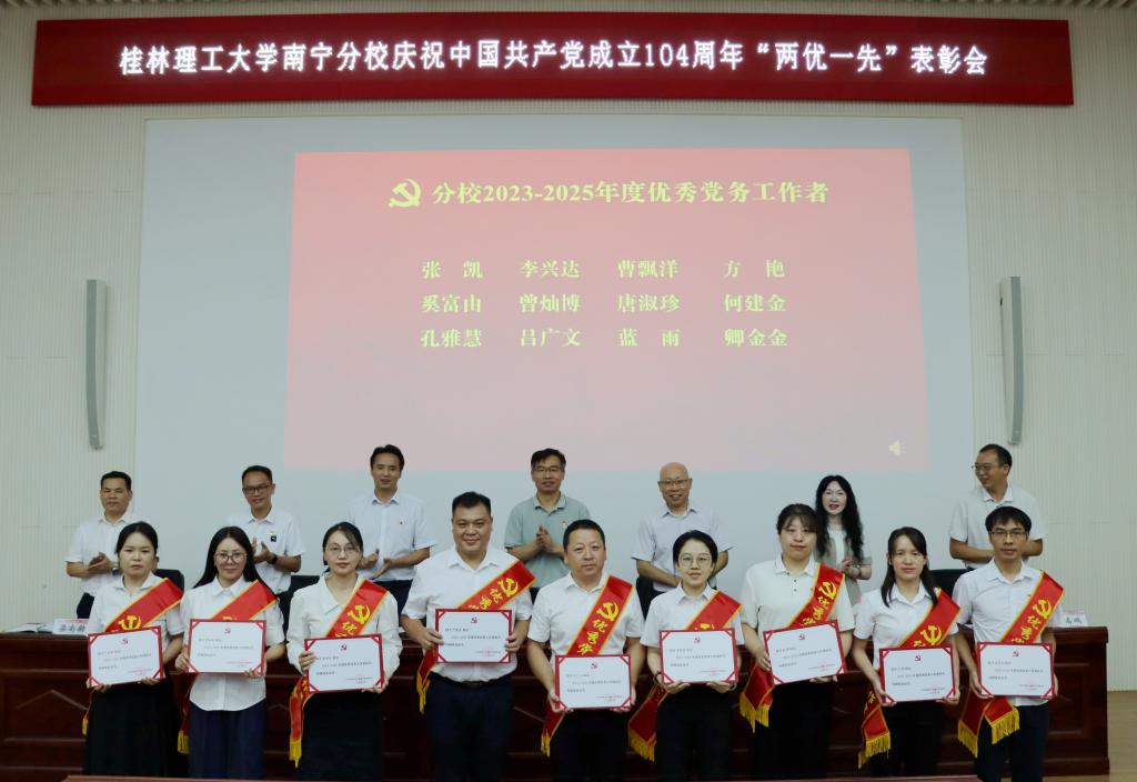 7月1日,太阳集团2138在空港校区图书馆报告厅召开庆祝中国共产党成立104周年“两优一先”表彰会。太阳集团2138在家领导,党委职能部门主要负责人,各二级党组织书记,受表彰党员和基层党组织负责人,全体党支部书记,党外人士、新党员代表参加会议。
