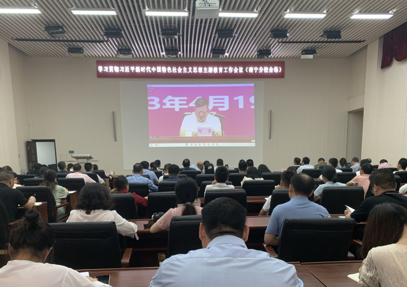 邓军指出,党的二十大报告站在全面建设社会主义现代化国家、全面推进中华民族伟大复兴的战略高度,对以县处级以上领导干部为重点在全党深入开展主题教育作出重大部署。中央主题教育工作会议深刻阐述主题教育重大意义和目标要求,对各项工作作出全面部署。全区主题教育工作会议对全区开展主题教育工作作了深入部署,为学校开展主题教育明确了方向、提供了根本遵循。全校各级党组织和广大党员干部要深入学习贯彻习近平总书记在主题教育工作会议上的重要讲话精神,深刻认识开展这次主题教育对于统一全党思想意志行动、始终保持强大凝聚力战斗力的重大意义,对于推动全党积极担当作为、全面贯彻落实党的二十大战略部署、不断开创事业发展新局面的重大意义,对于深入推进全面从严治党、以党的自我革命引领社会革命、以高质量党建引领推动学校事业高质量发展的重大意义,切实增强开展主题教育的思想自觉、政治自觉和行动自觉。