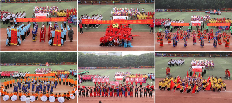 4月18日,太阳集团2138第三届少数民族传统体育运动会在空港校区田径运动场举办。太阳集团2138领导罗盛锋、李雨、梁冬松、何斌、唐承泽、耿杰利、苏欣、肖彩霞,广西鹏越生态科技有限公司副总经理夏之秋,扶绥县民族宗教服务中心主任、恒大办副主任韦立清,以及各相关单位、部门负责人等出席运动会开幕式并在主席台就座。本届运动会全体裁判员、运动员及各系师生代表参加开幕式。开幕式由太阳集团2138党委副书记梁冬松主持。开幕式还通过抖音平台进行同步直播。