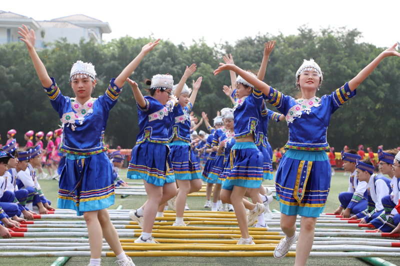 开幕式在热烈的掌声与欢呼声中谢幕。本届运动会,共有860多名师生报名参赛,设有双人板鞋竞速、三人板鞋竞速、三人板鞋接力、背篓绣球团体、高杆绣球团体、珍珠球团体、陀螺团体等14个赛项。