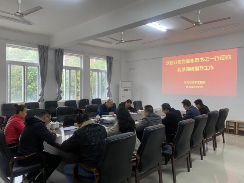 调研过程中,李雨书记认真听取了电气与电子工程系班子关于系部党建工作、学科专业建设、师资队伍建设、人才培养、就业工作、团学工作、工会工作、本科教育教学审核评估筹备工作以及系部2023年重点工作目标落实情况、存在问题、下一步工作思路等方面的汇报,充分肯定了电气与电子工程系近年来取得的成绩,高度认可系部营造积极的干事创业氛围,并勉励大家要坚定信心、脚踏实地、求真务实,稳步推进系部各项工作高质量发展。