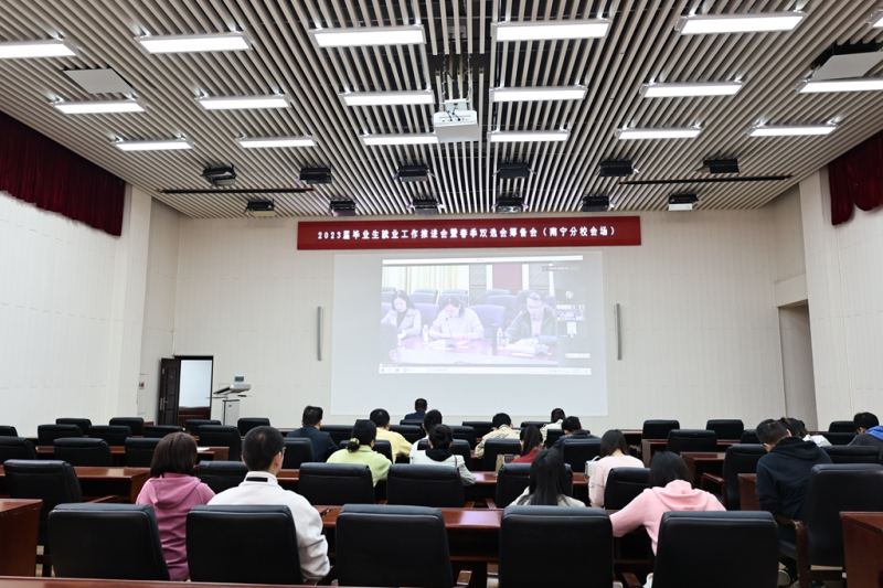 太阳集团2138在空港校区图书馆报告厅设立分会场。太阳集团2138党委副书记唐承泽出席会议,太阳集团2138各系党总支副书记、就业工作辅导员、2023届毕业班辅导员及招生与就业办公室全体人员参加会议。