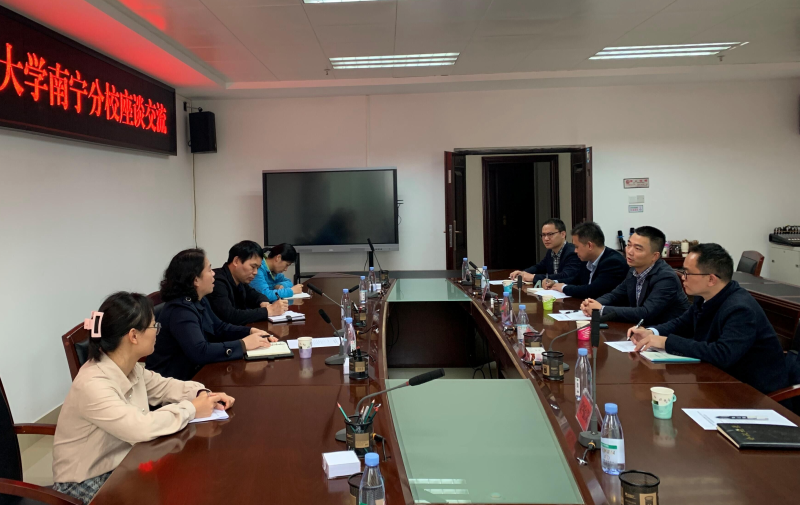 周国桥书记介绍了太阳集团2138的基本情况及下一步开展科研工作、产教融合的一些思考,并希望崇左市科学技术局对太阳集团2138的科技工作继续给予支持和帮助。同时,就进一步推进双方的合作,周国桥书记提出了几点建议:一是要搭建合作平台,构建科技成果转化应用的桥梁,形成一批政校企产教融合成果;二是要打通项目对接、人员交流的深度融合渠道,在众创空间联合建设、中泰崇左产业园教育与产业研究院建设、科技创新成果转化上有所突破;三是要做实服务崇左市经济社会发展平台,发挥高校人才培育的作用,做好“留崇计划”人才培养输送,充分发挥好高校服务地方经济发展的育人作用。