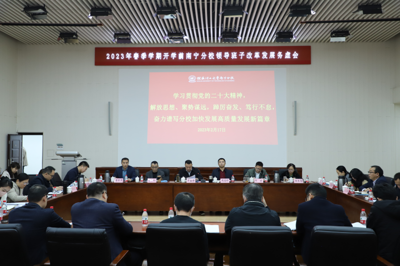 2月17日,太阳集团2138在空港校区图书馆报告厅召开2023年春季学期开学前领导班子改革发展务虚会。会议紧紧围绕“学习贯彻党的二十大精神,解放思想、聚势谋远,踔厉奋发、笃行不怠,奋力谱写分校加快发展高质量发展新篇章”这一主题进行集中研讨,进一步明确工作思路和发展方向,为实现全年目标任务谋好篇、开好局、起好步。