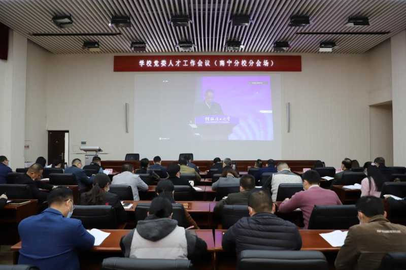 学校党委书记邓军围绕“以更大力度谋划推进人才强校战略,奋力开创新时代学校人才工作高质量发展新局面”主题作了讲话。他指出,党的十八大以来,习近平总书记站在党和国家事业全局高度,着眼实现“两个一百年”奋斗目标,围绕人才工作和人才发展作出一系列重要论述,党的二十大作出实施科教兴国战略,强化现代化建设人才支撑的重大部署,为新时代人才工作指明了前进方向、提供了根本遵循。全校各级党组织、各部门、各单位和广大党员干部教职员工要深刻领会习近平总书记在中央人才工作会议上重要讲话的丰富内涵和实践要求,深刻领会党的二十大关于深入实施人才强国战略的重大部署安排,牢牢把握新时代学校人才工作的正确方向,深刻领悟“两个确立”的决定性意义,增强“四个意识”、坚定“四个自信”、做到“两个维护”,深刻领会习近平总书记关于新时代人才工作的新理念新战略新举措、关于加快建设世界重要人才中心和创新高地的战略谋划、关于做好新时代人才工作的战略部署和重大举措,增强做好人才工作的政治自觉、思想自觉、行动自觉,以更加有力有效的举措推动学校人才工作高质量发展,推动全校人才队伍扩大增量、优化存量、提高质量、释放能量,在新的历史起点上奋力开创学校人才工作新局面,在加快人才强国建设和新时代壮美广西建设中展现桂工更大担当和作为。