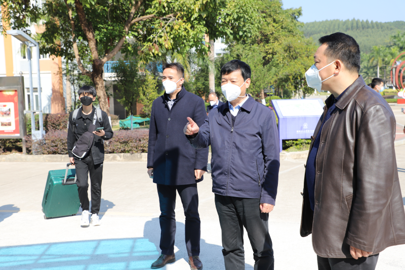在空港校区校园正大门,解庆林校长与即将离校回家的学生亲切交流,叮嘱同学们在离校返乡途中要注意出行安全,做好个人防护,寒假期间严格遵守当地疫情防控规定,科学佩戴口罩,减少不必要的外出和聚集,做好自我健康监测。随后,解庆林校长到校园后山水塔查看维修工作落实情况,并对水塔周围环境美化和安全管理给出指导意见。