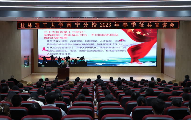 会上,雷林春上校结合自身参军经历,详细讲解了有关参军入伍的政策和要求,重点对大学生征兵的条件和流程,以及对扶绥县大学生征兵入伍的各项优惠政策,包括入伍前、服役期间和期满安置,从各类补助补贴待遇到服役提干、期满退役、退役复学后升学等进行了详细介绍。
