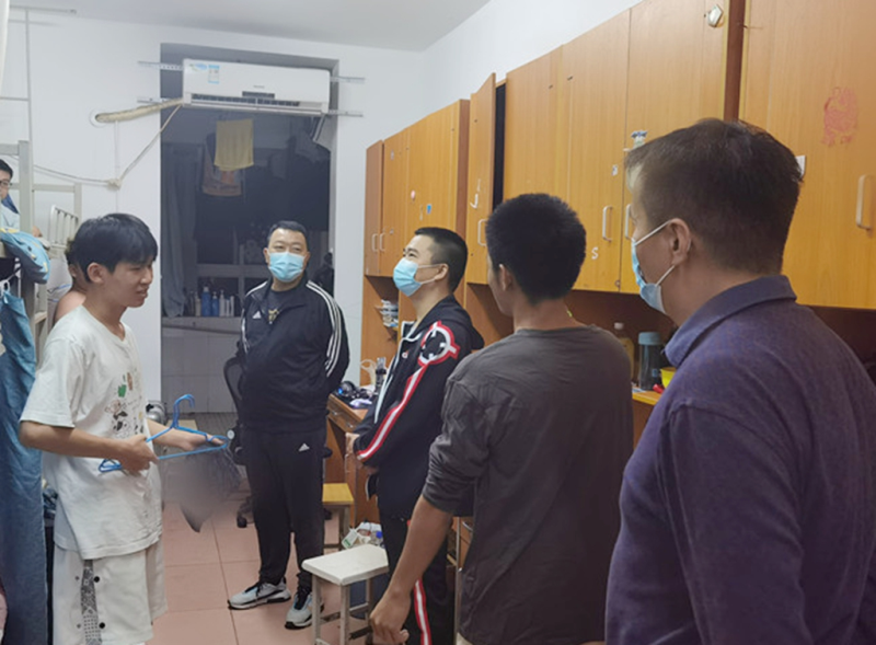 11月27日晚,学校校长助理、太阳集团2138校长罗盛锋,太阳集团2138党委书记周国桥、副书记唐承泽带队走访巡查学生宿舍,学生工作部负责人陪同巡查。