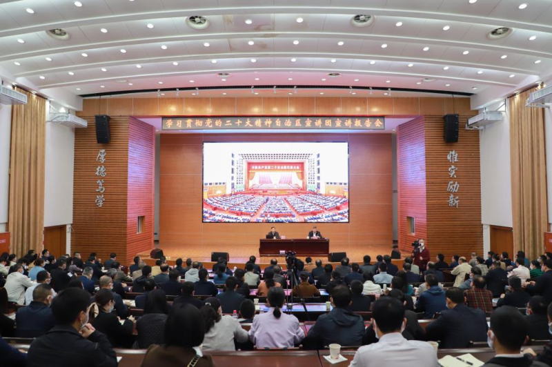 自治区宣讲团成员、自治区党委组织部副部长曾凯作宣讲报告