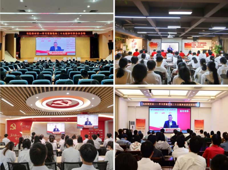 学校青年讲师团成员、党委常委、宣传部部长叶昊,自治区党委讲师团特聘教授、学校党委常委、统战部部长邱杰,马克思主义学院党委书记耿俊茂分别从“以人民为中心的发展思想”“中国式现代化”“马克思主义中国化时代化”三个角度对党的二十大精神进行了系统阐释和深入解读。