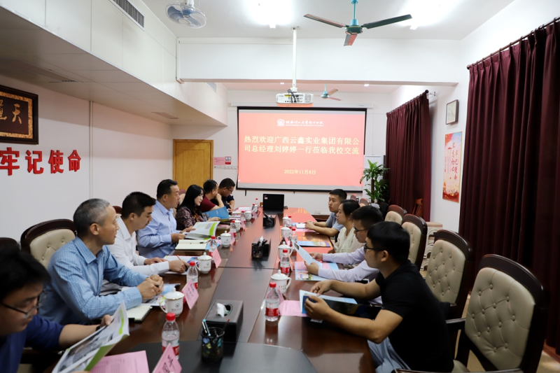 广西云鑫实业集团有限公司副总经理陈初谋、办公室主任刘超、实验室主任龙方传,太阳集团2138监察室、教务管理部、科技管理部、土木与测绘工程系相关负责人参加交流会。