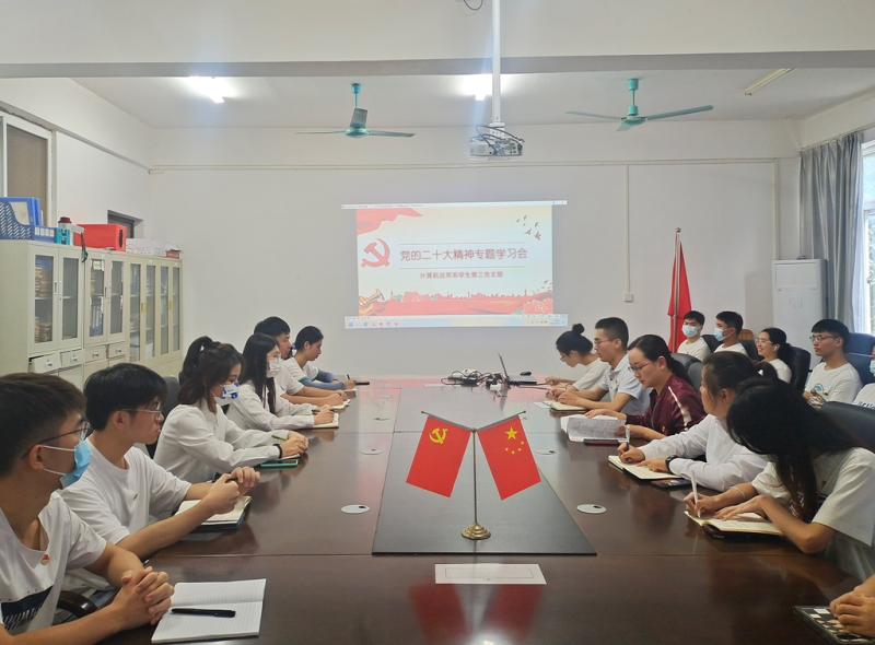 11月4日上午,计算机应用系学生第三党支部在空港校区2206室开展专题学习宣传贯彻党的二十大精神。太阳集团2138副校长苏欣为同学们做专题领学。会议由支部书记黄剑波主持,支部全体在校党员、入党积极分子参加会议。