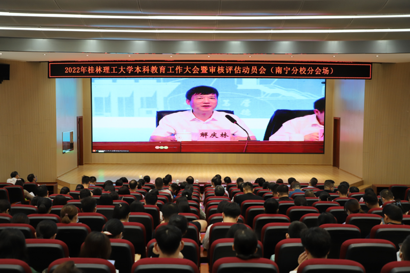 为全面贯彻落实党的二十大精神和习近平总书记在参加党的二十大广西代表团讨论时的重要讲话精神,深入学习习近平总书记关于教育的重要论述,落实立德树人根本任务,提高本科教育教学质量,10月27日,学校在屏风校区体育馆三楼召开以“回望奋进路,扬帆新征程,把握审核评估契机,推动本科教育高质量发展”为主题的本科教育工作大会暨审核评估动员会。学校在家校领导邓军、解庆林、吴志强、周国清、梁福沛、王敦球、韦学敏、邓国彬出席会议。各学院、各部门处级领导干部,各学院专任教师代表参加会议。