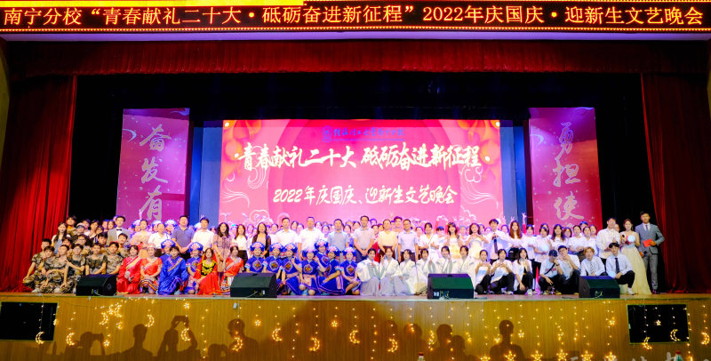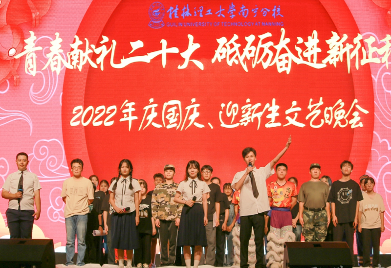 金秋送爽,桂工学子意气风发,共谱青春华章。9月29日晚,太阳集团2138“青春献礼二十大 砥砺奋进新征程”庆国庆、迎新生文艺晚会在空港校区体育馆隆重举行。太阳集团2138领导罗盛锋、周国桥、唐承泽、陈东莲、苏欣、肖彩霞、马华菊,校企合作单位中国联通崇左分公司副总经理张文川、中国联通产业互联网研究院崇左分院院长农杰霖、中国联通扶绥分公司总经理黄传飞等出席晚会。太阳集团2138部分教师与2022级全体新生共同见证这场充满青春活力的迎新之夜。晚会通过网络直播线上线下同步进行。
