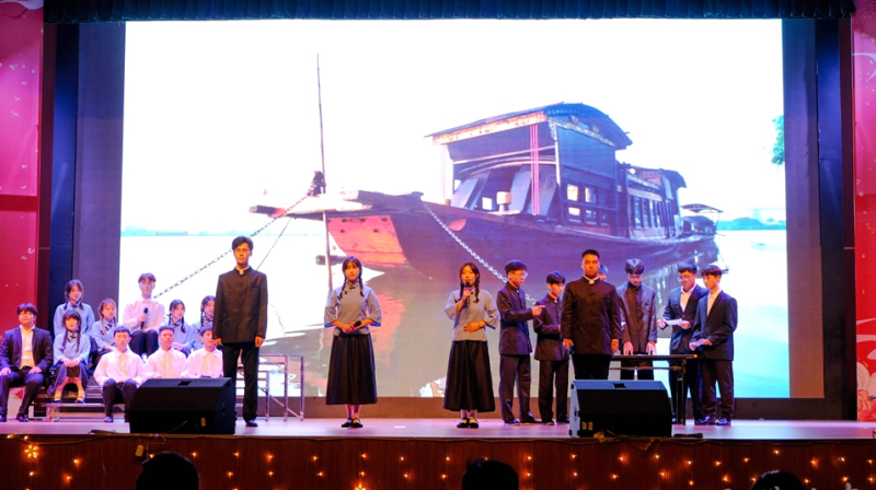 晚会共分两个篇章,上篇“红心领党”,唤起红色记忆,描摹青年力量;下篇“奋斗青春”,展现桂工学子朝气蓬勃、锐意进取的精神风貌。晚会通过舞蹈、朗诵、歌曲等多种形式,表达了对新同学的美好祝愿。广西青年歌手艾米与太阳集团2138教师张赤合唱的歌曲《为了谁》,将晚会推向了高潮,随后艾米用嘹亮的歌声独唱《复兴中国梦》,更是把对祖国深沉的爱融入歌曲中,将歌声梦回百年中华历史,从站起来到富起来再到强起来的伟大飞跃,中华历史百年沧桑变化让人感慨。