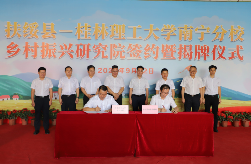 邓军强调,学校将以本次签约揭牌为契机,将建设好乡村振兴研究院作为立足“两个大局”,践行总书记关于让人民生活幸福是“国之大者”重要指示精神的重要举措,认真贯彻新发展理念,积极融入和服务新发展格局,以乡村振兴战略目标和扶绥经济社会发展需求为导向,充分发挥人才、科技创新和学科专业优势,以联合攻关为抓手,以项目合作为载体,推动校县合作协议落地见效,为建设中国特色社会主义壮美广西、共圆复兴梦想作出桂工贡献。