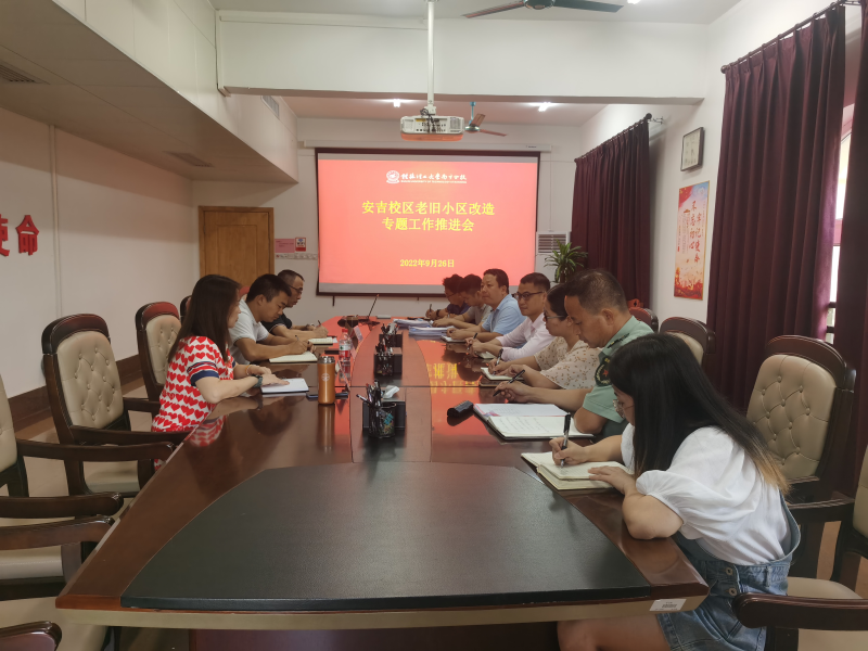 会上,后勤管理部负责人对安吉校区老旧小区改造工程的进展情况及遇到的困难进行了汇报。