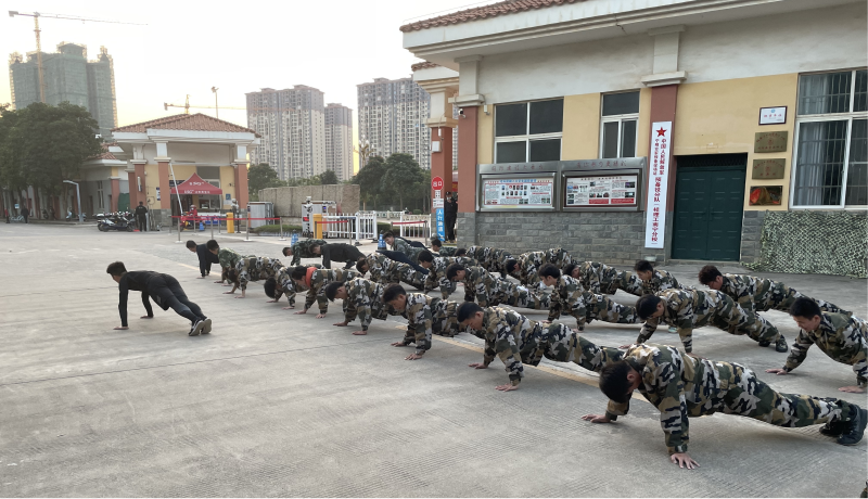 由退役复学大学生组成的“军训教官团”日常体能训练(二)