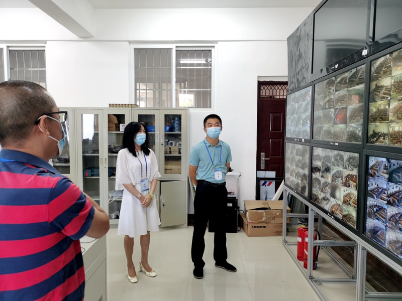 太阳集团2138党委书记周国桥(右一),太阳集团2138副校长马华菊(右二)到场检查指导工作