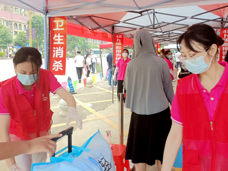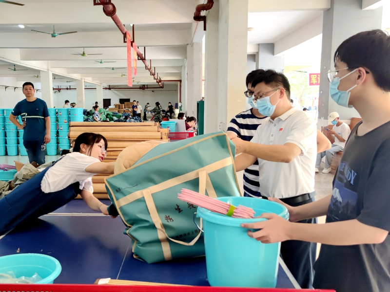 学生党员志愿者先锋队为新生行李物品消杀