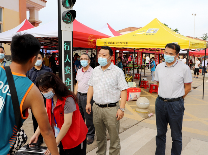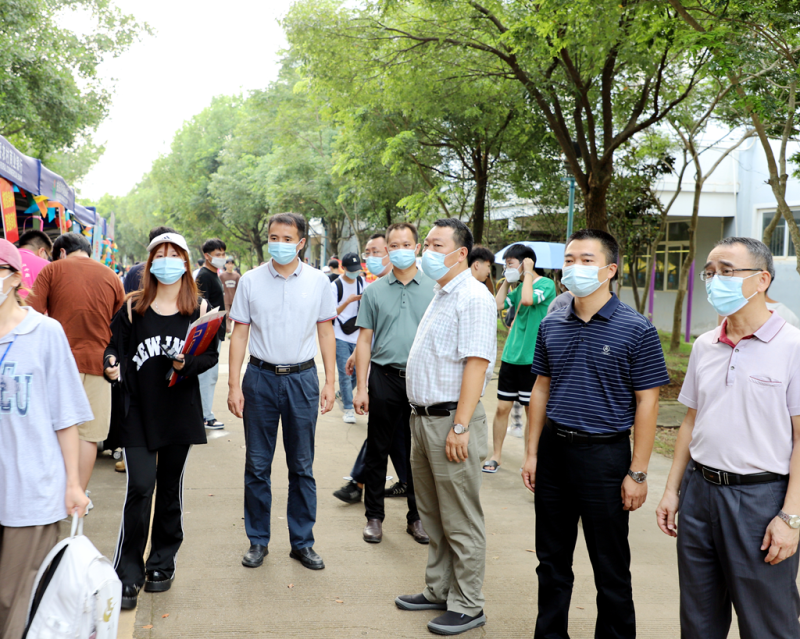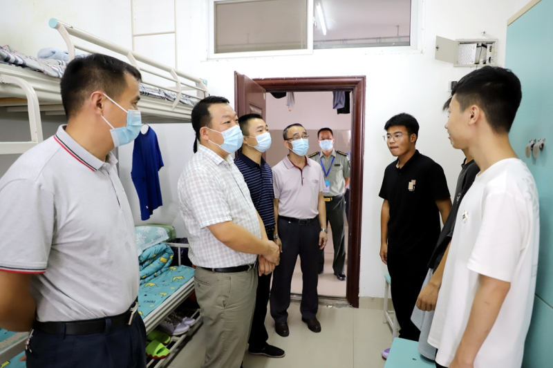 太阳集团2138领导罗盛锋、周国桥、梁冬松、何斌、唐承泽率队亲临迎新现场,走访各新生报到点,详细了解新生报到及各项工作开展情况,看望慰问迎新一线工作人员、学生志愿者,与2022级新生及家长亲切交流,并到5号学生公寓了解新生入住情况及查看配套设备设施。太阳集团2138领导一行强调,要高度重视疫情防控常态化下新生入学工作,秉承“以人为本,一切为学生服务”的理念,为新生及新生家长提供更加细致周到的服务,及时解决新生入学过程中出现的问题,确保新生入学报到工作平稳有序开展。
