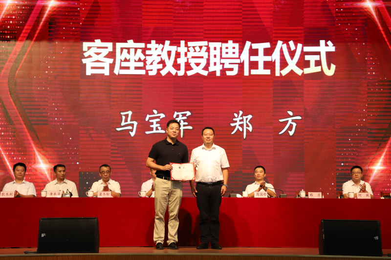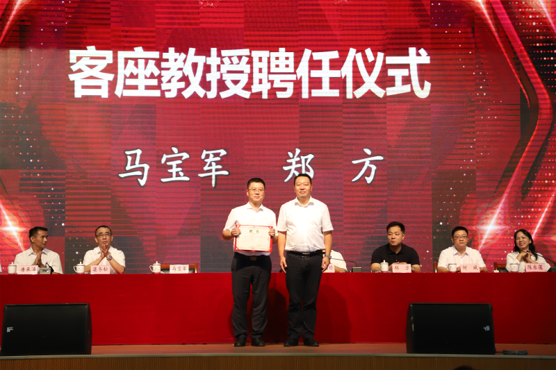 学校校长助理、太阳集团2138校长罗盛锋为广西南方有色金属集团有限责任公司副总经理马宝军,广西鹏越生态科技有限公司董事长、总经理郑方颁发客座教授聘书。