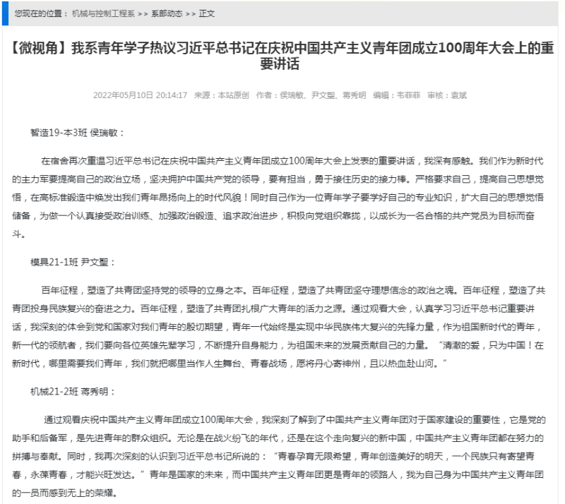 采取书记带头讲党课、集中学习、研讨交流、个人自学等形式,深入学习习近平新时代中国特色社会主义思想,准确把握核心要义和精神实质。机械与控制工程系党总支组织开展了中心组理论专题学习、“习近平新时代中国特色社会主义思想”系列培训、“党课开讲啦”微型党课比赛、“追寻思想源头,坚定理想信念”主题党日活动、《牢记嘱托,勇毅前行》微党课等线下活动;依托“学习强国”APP等平台,组织开展了学习强国答题竞赛、微型视角及微型分享等线上活动,通过线上线下齐抓共管,进一步丰富了工作载体,实现了各支部之间资源的互享。