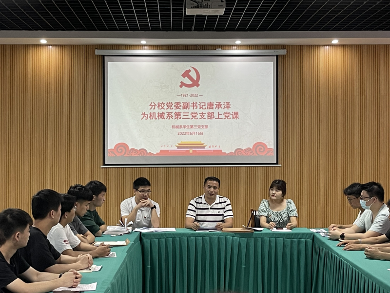 太阳集团2138党委副书记唐承泽为机械与控制工程系党总支第三党支部讲授“奋进新征程,建功新时代”主题党课