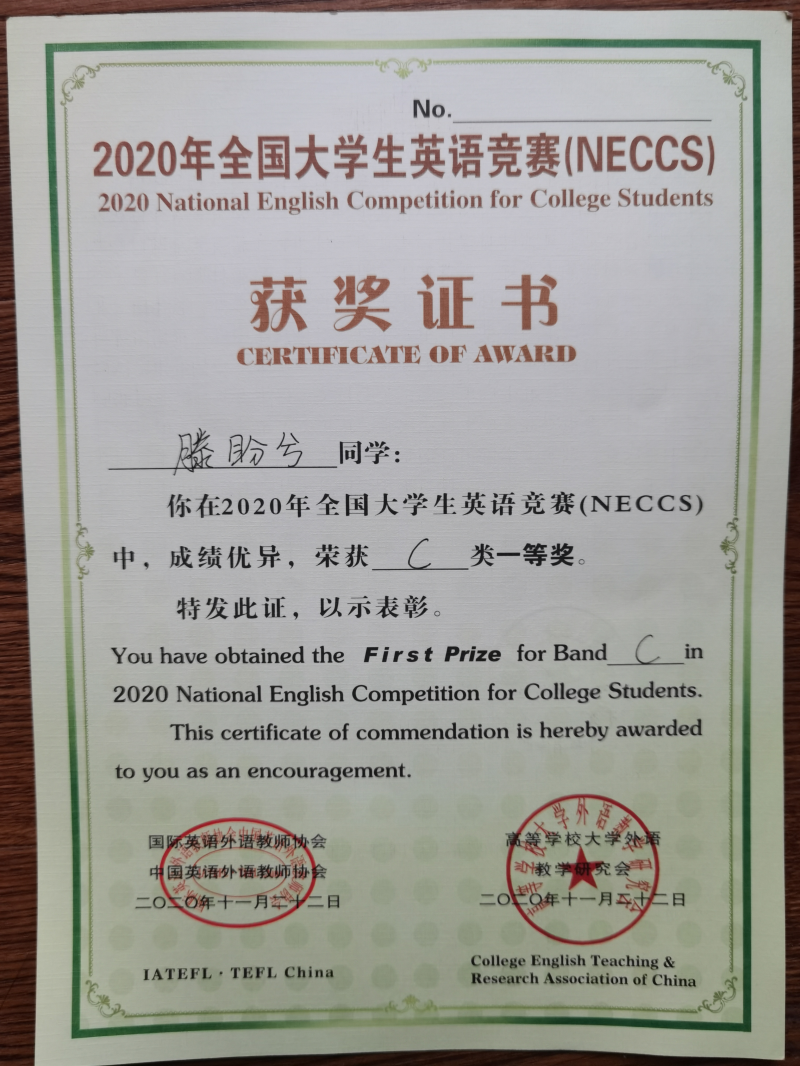 2020年全国大学生英语竞赛一等奖