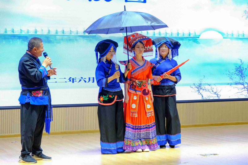 活动现场,区级非遗项目壮族采茶剧传承人姚文老师和他的团队,为太阳集团2138师生带来独具民族文化特色的《外婆送背带》、铜锣鼓《贺茶歌》等节目。内容精彩纷呈,活动形式活泼有趣,让现场观众感受到了中国优秀传统文化的无限魅力,博得阵阵热烈的掌声。通过开展非遗文化进校园推广和普及优秀传统文化,传承民族团结薪火,坚定中华文化自信。