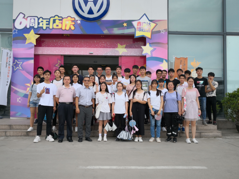 经济与管理系专任教师李鹏敬(前排左二)带领2018级市营本1班学生外出南宁鑫广达博冠一汽大众4S店实习