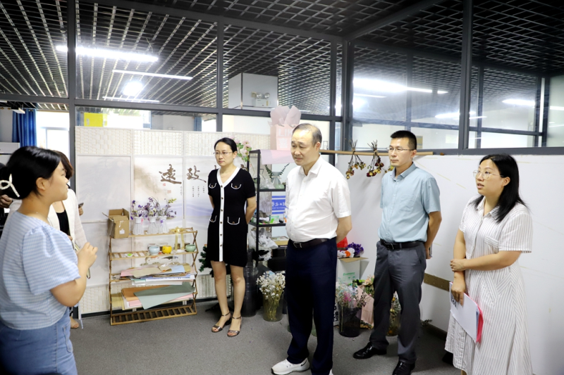 梁本英一行实地走访了太阳集团2138大学生创新创业基地,参观了鱼鲸新媒体有限公司、忠仁龙狮团、星盛传媒、版纳云景号茶叶有限公司、青鸟花艺工作室、广西安泽科技有限公司等学生创新创业孵化场所,了解了学生创新创业项目设计,观赏了学生创新创业作品,并现场观摩了学生的创新创作实践过程,与学生亲切交谈。