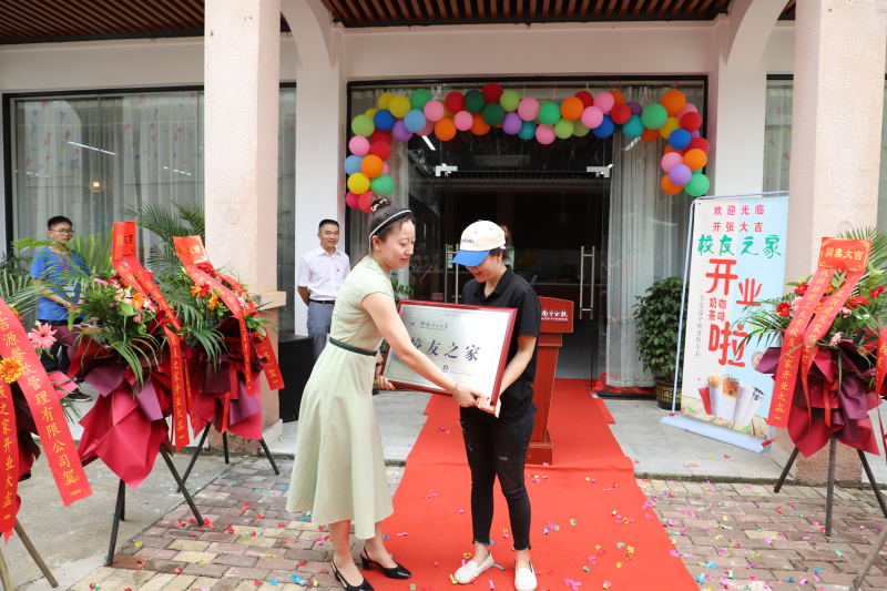 学校党委办公室、校长办公室副主任、校友办副主任龙媛向太阳集团2138“校友之家”经营代表授牌