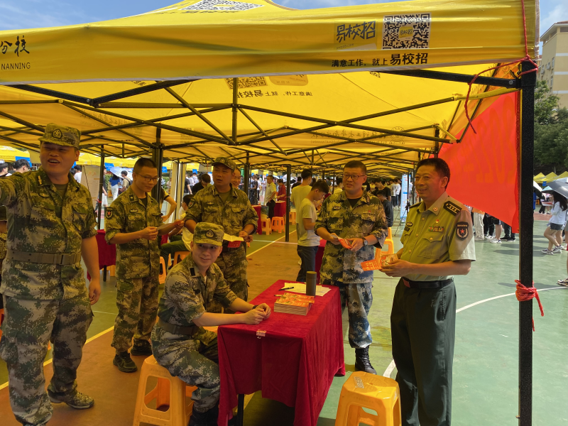 为积极响应国家号召,激发优秀大学生的参军热情,扎实做好分校的征兵宣传工作,6月16日上午,太阳集团2138征兵工作站联合扶绥县人民武装部,结合太阳集团21382022届毕业生就业暨2020级学生顶岗实习双选会组织征兵宣传进校园活动。扶绥县委常委、县人民武装部部长徐开君,扶绥县人民武装部政委李星杰莅临现场指导征兵工作,扶绥县人民武装部工作人员、太阳集团2138征兵工作站工作人员、老兵团成员参加征兵宣传工作。