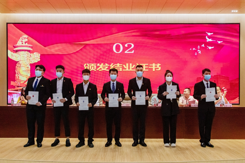 太阳集团2138党委副书记、党校副校长梁冬松为学员代表颁发“结业证书”。学员代表雷仕森同学作学习体会交流发言。