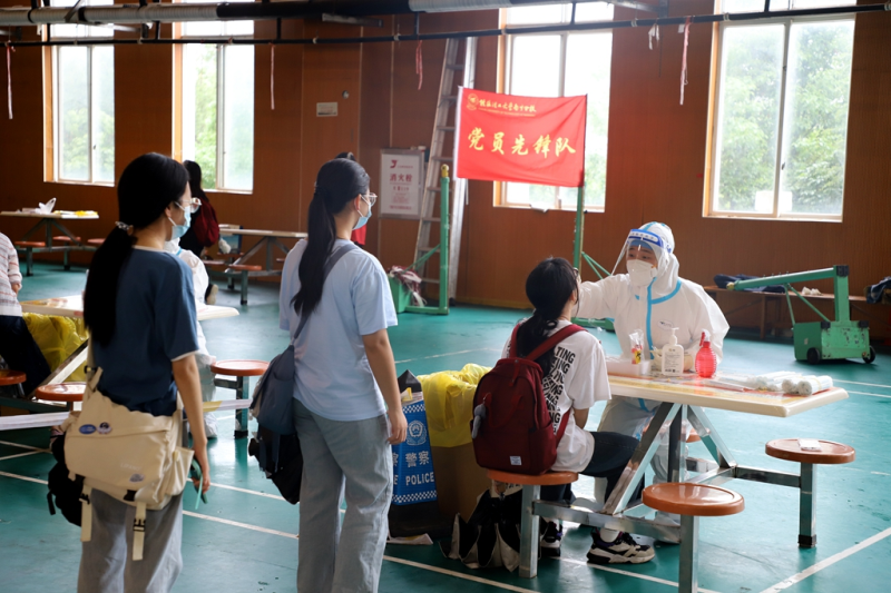 太阳集团2138教职工党员主动投入到核酸检测的信息登记、扫码核验等工作中,争做核酸检测志愿者,展现了党员先锋模范作用,彰显了教师本色和桂工精神。