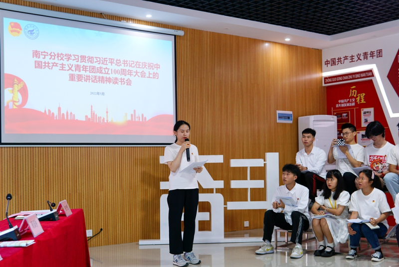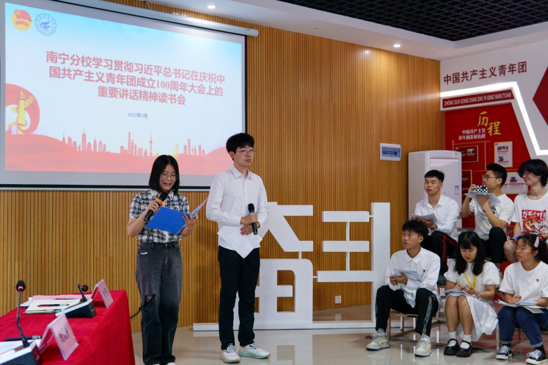 周国桥书记强调,青年师生要深入学习贯彻习近平总书记在庆祝中国共产主义青年团成立100周年大会上的重要讲话精神,牢记领袖嘱托,坚定共产主义远大理想和中国特色社会主义共同理想,高举团旗跟党走,与党同心,与祖国和人民同行,不负韶华、不负时代、不负人民。积极投身全面建设社会主义现代化强国的时代洪流,在实现中华民族伟大复兴的征程和实践中绽放青春光彩,谱写新时代中国特色社会主义壮美广西的篇章,以实际行动和优异成绩迎接党的二十大胜利召开。