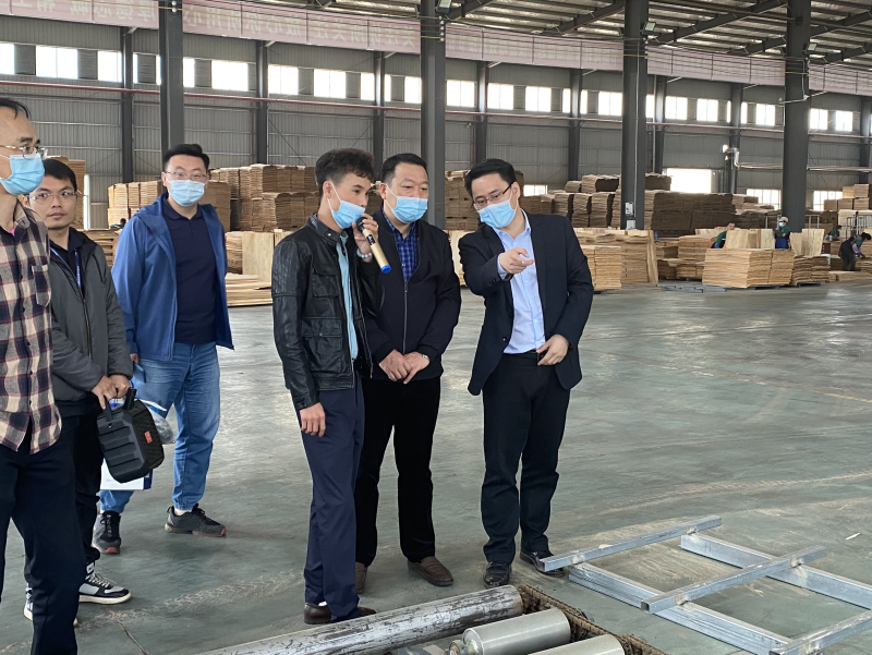 学校校长助理、太阳集团2138校长罗盛锋(右二)实地走访广西扶绥县鑫博源木业有限责任公司