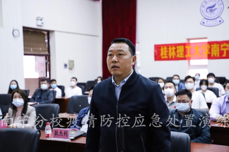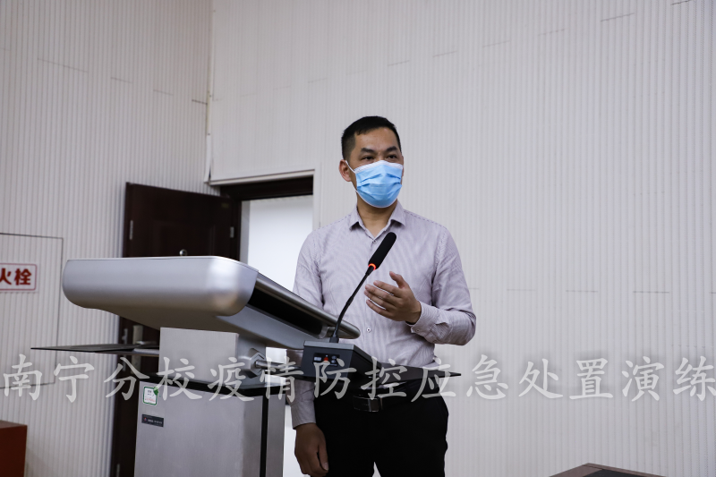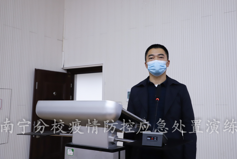 太阳集团2138新冠肺炎疫情防控工作领导小组指挥部指挥长,学校校长助理、太阳集团2138校长罗盛锋宣布演练开始