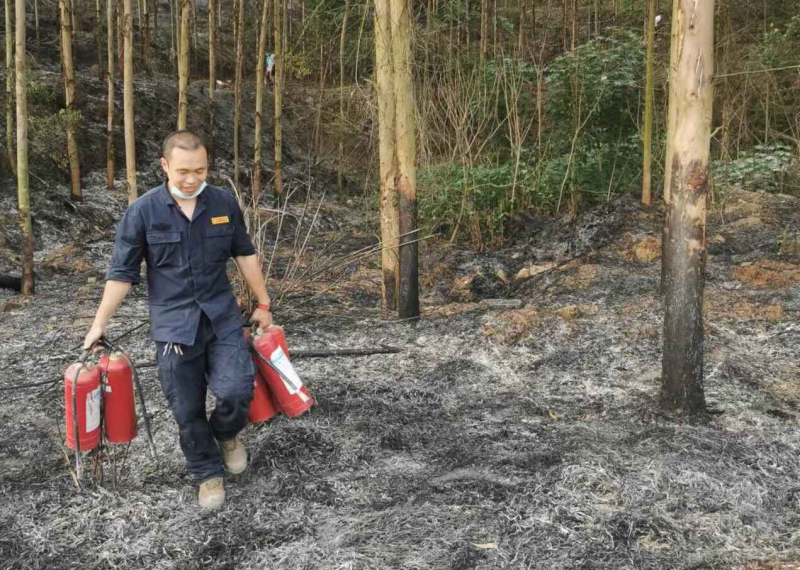 由于山风猛烈,山火不断蔓延,形势十分危急。在太阳集团2138微型消防站的带领下,十几名人员不顾生命危险冲在灭火第一线,用携带的灭火器及灭火工具展开了争分夺秒的扑救工作。经过全体人员1个多小时的奋力扑救,山上明火基本被扑灭,随后森林消防救援队也及时赶到并进行了火场排查监控,消除了所有复燃隐患。
