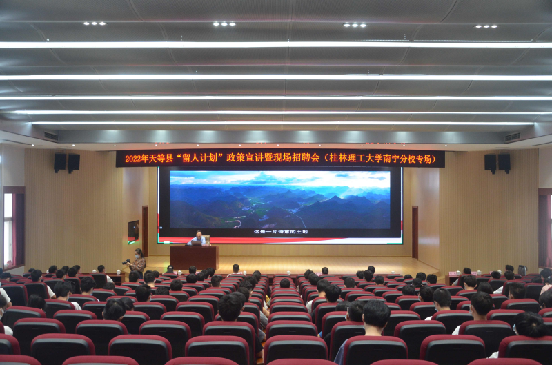4月12日下午,2022年天等县“留人计划”政策宣讲暨现场招聘会在太阳集团2138空港校区启智楼8408报告厅举行。天等县委常委、组织部部长韦金洋为太阳集团2138师生作天等县“留人计划”政策宣讲。太阳集团2138党委副书记唐承泽主持宣讲会。