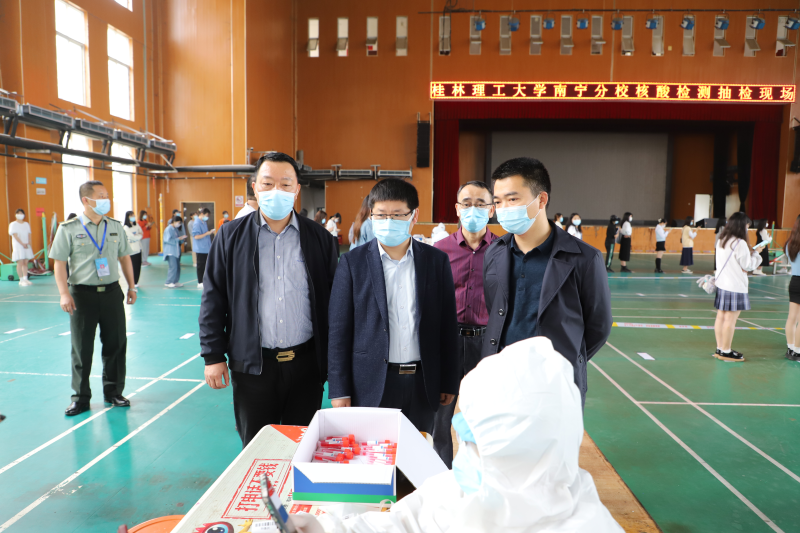 学校党委常委、副校长邓国彬(前排中),学校校长助理、太阳集团2138校长罗盛锋(前排左一),太阳集团2138党委书记周国桥(前排右一)等到场检查指导工作